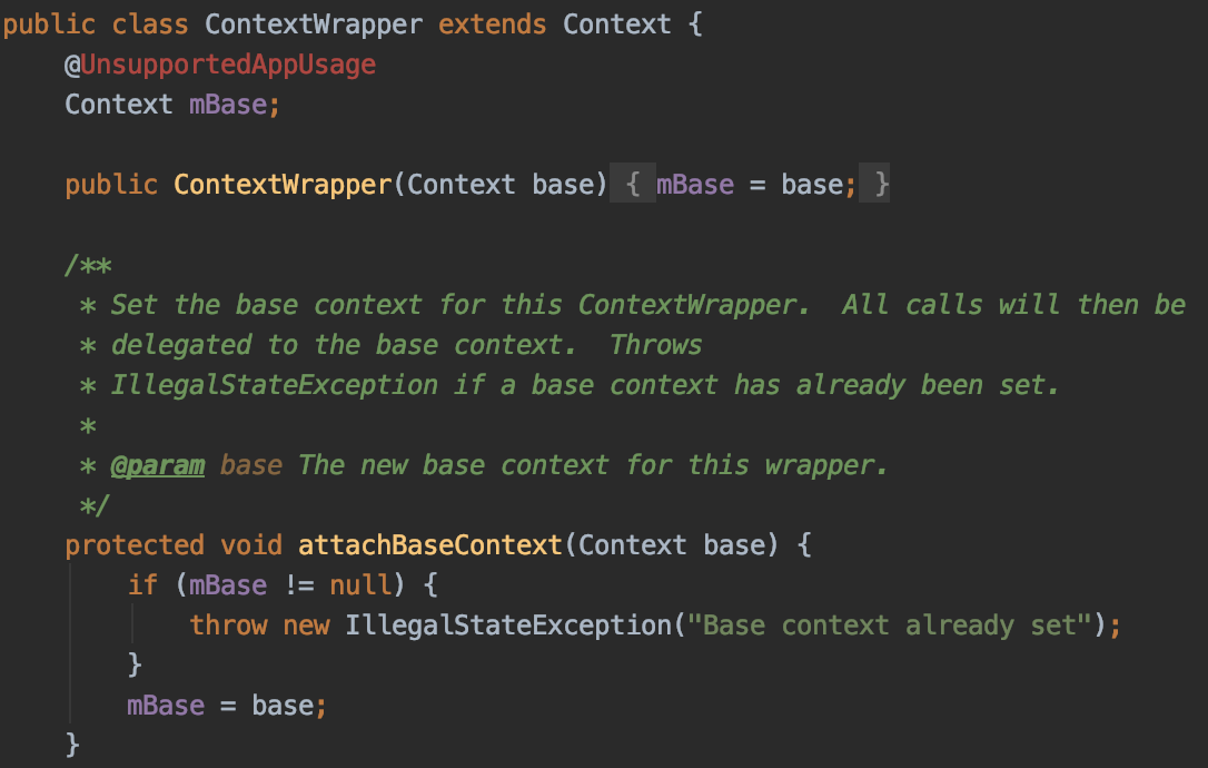 더 자세한 이해를 위해 ContextWrapper 클래스의 코드를 보면 아래와 같다.