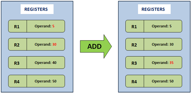 여기서 5와 30의 ADD 연산을 하기 위한 명령어는 다음과 같다.