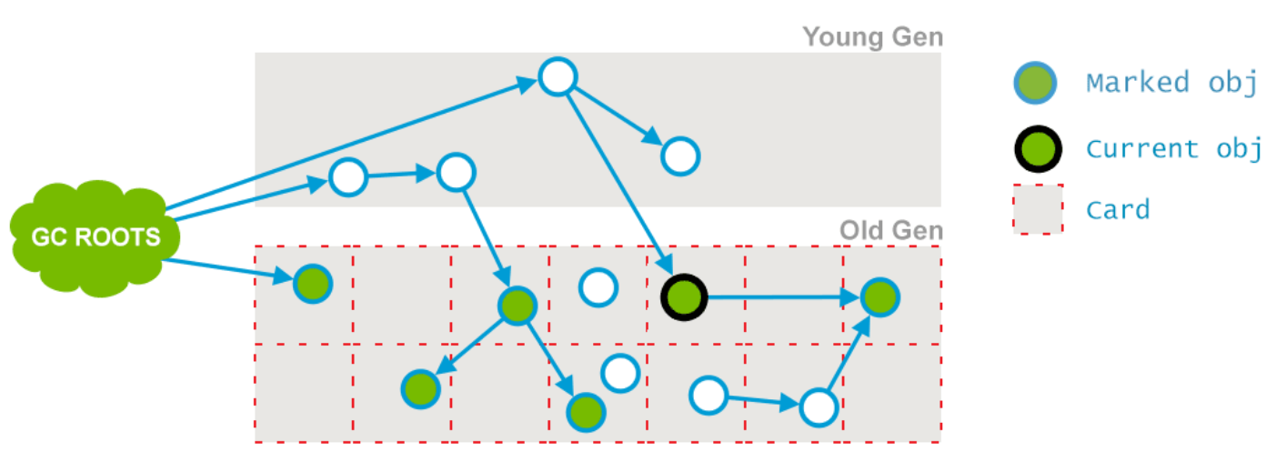 Old 영역에 512 바이트 chunk의 card table이 존재한다.