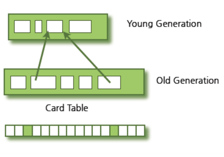 이 table의 역할은 old 객체에서 young 객체로의 참조 정보를 담고 있어 Minor GC 실행 시 메모리 회수 대상인지 아닌지를 빠르게 판단한다.