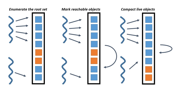 더 자세하게 들어가면 moving GC를 도입한 이유는 힙 압축을 통해 백그라운드 앱의 메모리 사용량을 줄일 수 있기 때문이다. 현재 힙 압축을 발생시키는 이벤트는 ActivityManager 프로세스 상태 변경 트리거로, 앱이 백그라운드로 이동하면 앱은 프로세스 상태가 더 이상 ‘버벅거림을 인식할 수 없는 상태’라고 ART에 알린다. 이렇게 하면 ART에서 compaction 및 monitor deflation과 같이 긴 시간 동안 애플리케이션 스레드 일시중지를 발생시키는 작업을 수행할 수 있게 된다. 현재 사용되는 moving GC 2가지는 semi-space compaction과 homogeneous space compaction이다.