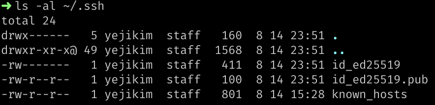 일반적으로 사용자 키 파일은 ~/.ssh 경로에 존재한다.