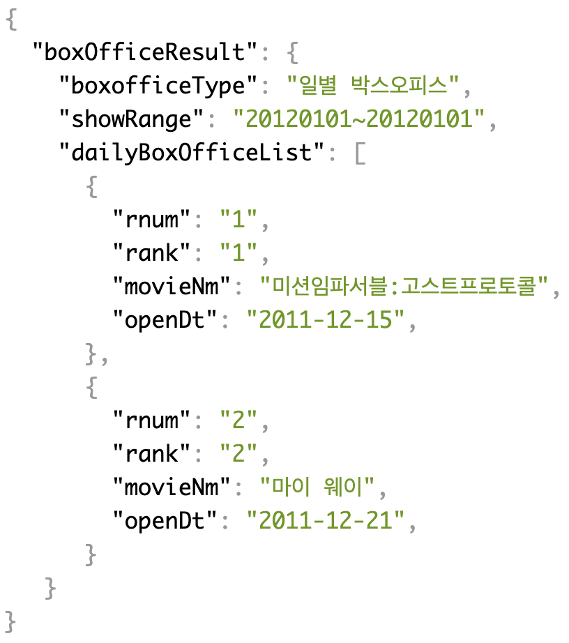 예를 들어 아래와 같은 JSON 포맷 응답이 온다고 하자.
